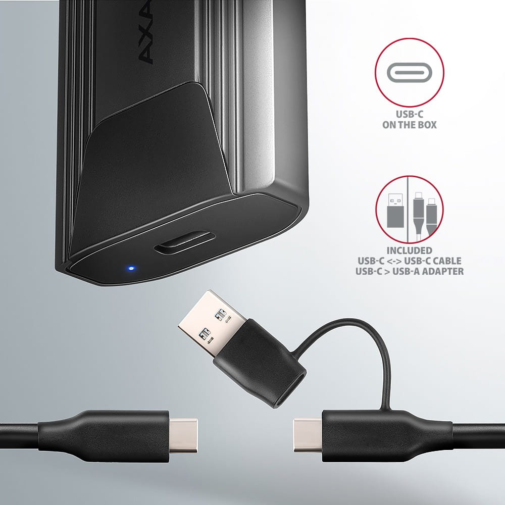 AXAGON EEM2-GTS2 Obudowa zewnętrzna aluminiowa bezśrubowa USB-C 3.2 Gen 2 M.2 NVMe & SATA SSD + USB-A - USB-C redukcja
