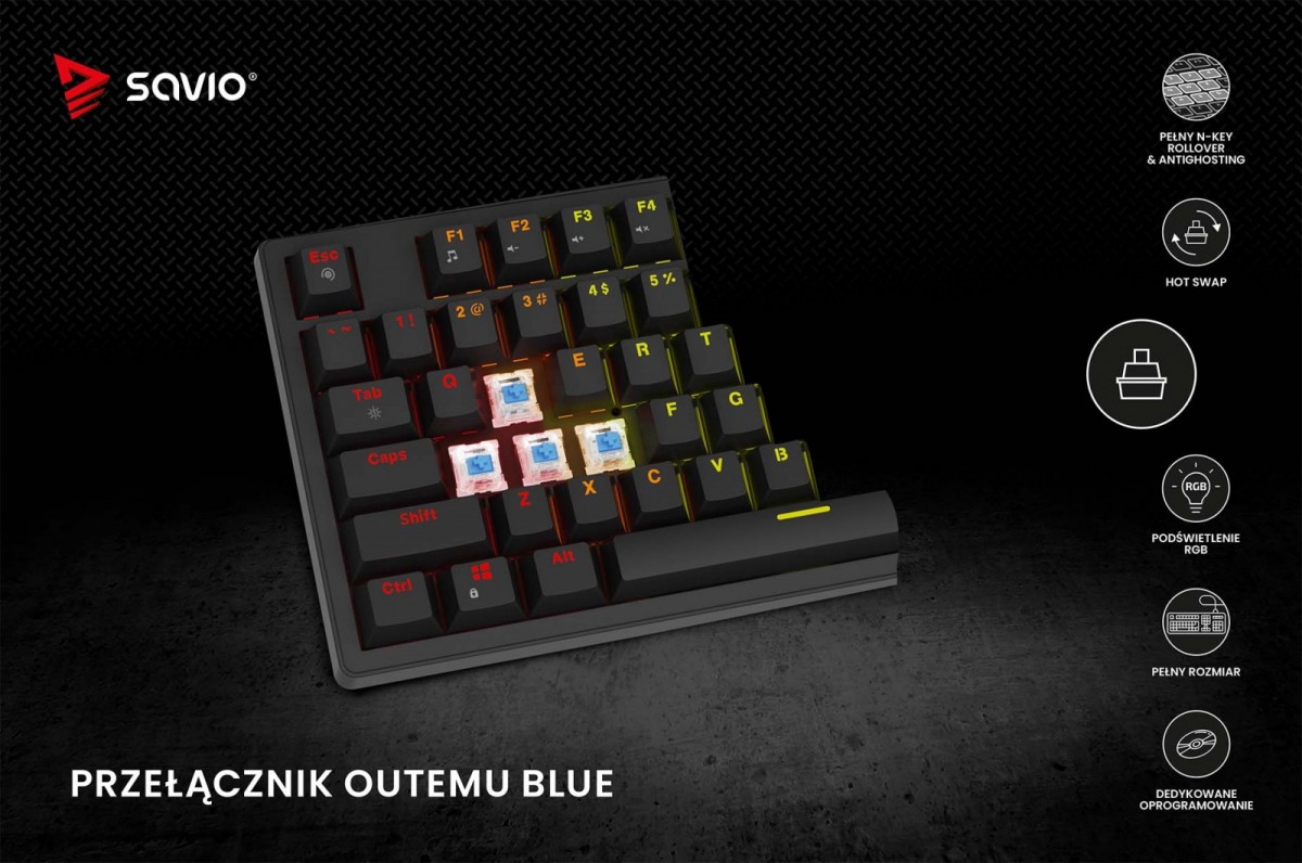 Savio Klawiatura mechaniczna STYX Outemu Blue Hot Swap RGB