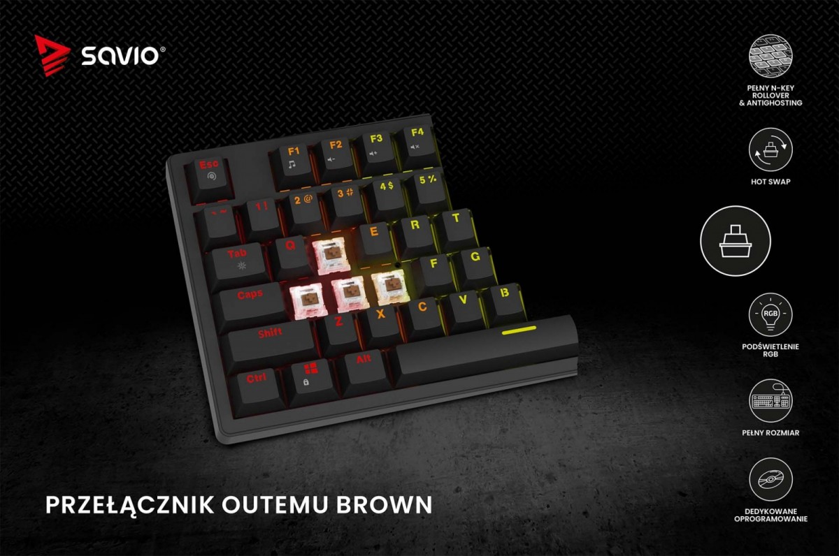 Savio Klawiatura mechaniczna STYX Outemu Brown Hot Swap RGB
